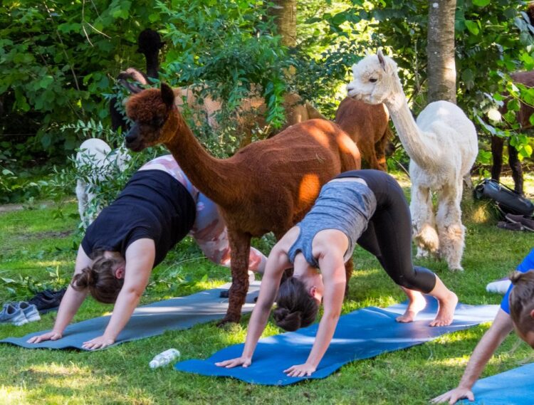 Die Yoga-Sessions auf der Alpaka-Weide bieten nicht nur entspannende Übungen, sondern auch eine herzliche Begegnung mit den neugierigen Alpakas. Vor jeder Yogastunde teilen die Besitzer des Alpakahofs ihr Wissen über das Verhalten und die Pflege der Tiere. Im Anschluss wird auf der Weide verweilt und es können Fotos für die Erinnerung mit dem Lieblingsalpaka geschossen werden (falls es auch möchte).