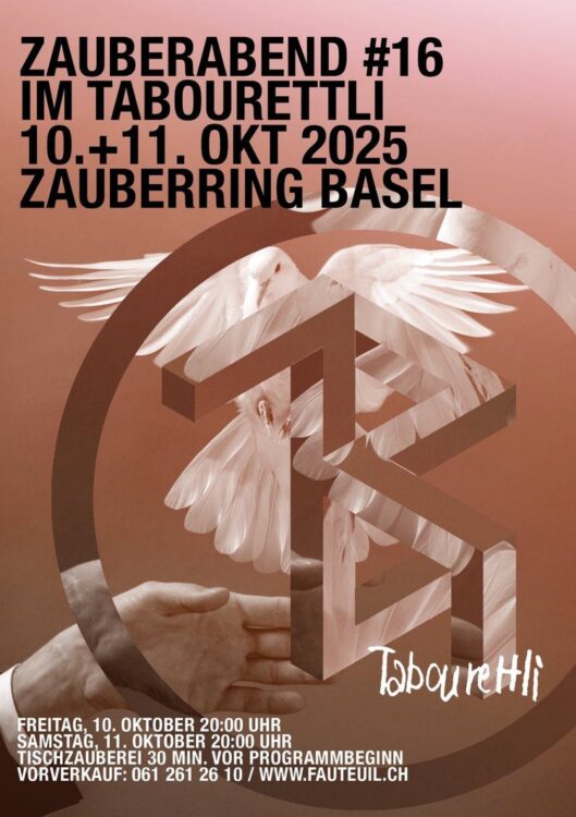 Willkommen zum 16. Zauberabend im Tabourettli! Bereit für eine Reise voller Magie und Wunder? Heute Abend erwartet euch eine unvergessliche Show, bei der die Grenzen zwischen Illusion und Wirklichkeit verschwimmen. Lehnt euch zurück, lasst euch verzaubern und geniesst eine bunte Mischung aus humorvollen Einlagen, atemberaubenden Tricks und zauberhaften Momenten. Dieser Abend gehört ganz der Magie – und euch!